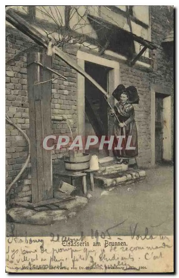 Cartes postales Folklore Alsace Elsasserin am Brunnen