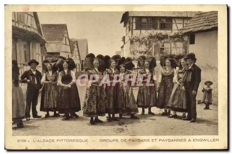 Cartes postales Folklore Alsace Groupe de paysans et paysannes a Engwiller