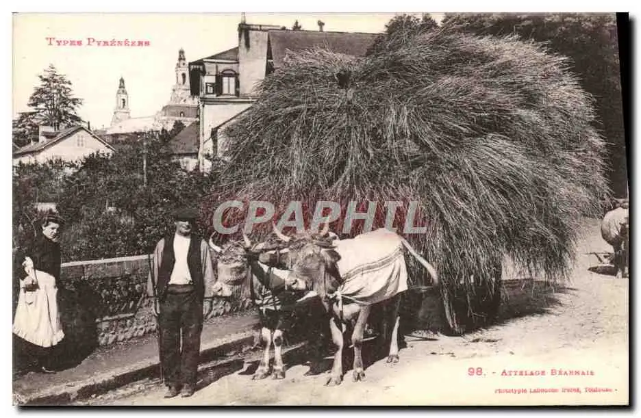 Cartes postales Folklore Attelage bearnais Boeufs TOP Pyrenees