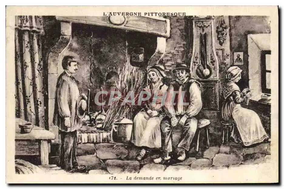 Cartes postales Folklore Auvergne La demande en mariage