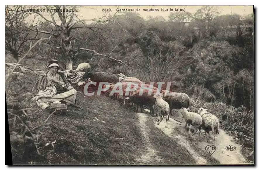 Cartes postales Folklore Auvergne Pittoresque gardeuse de Moutons sur le talus
