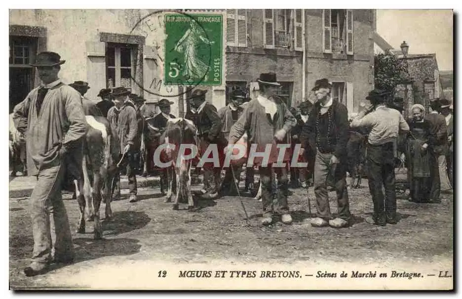 Cartes postales Folklore Bretagne Scene de marche en Bretagne Vaches TOP
