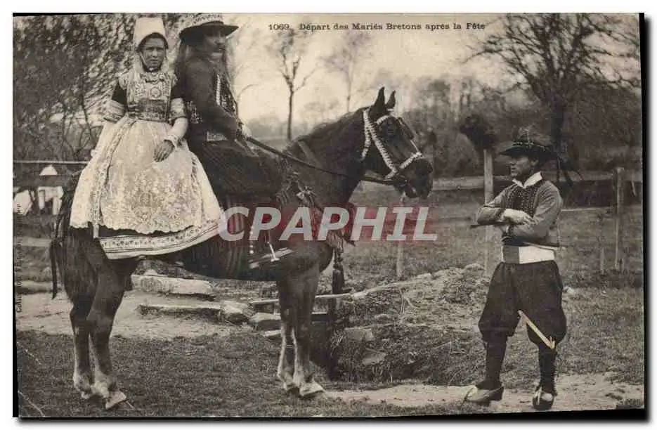 Cartes postales Folklore Depart des Marins Bretons apres la fete Cheval