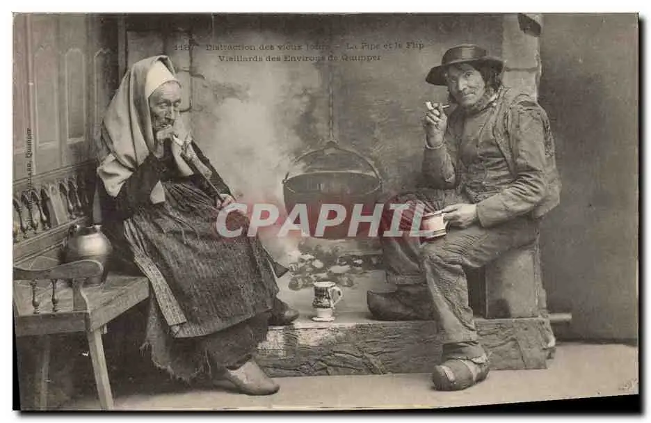 Cartes postales Folklore Distraction des vieux jours La pipe et le flip Vieillards des environs de Quimper Tabac