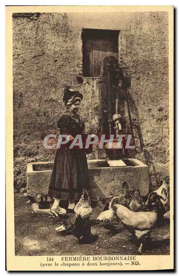 Cartes postales Folklore Fermiere Bourbonnaise Avec le chapeau a deux bonjours Poules