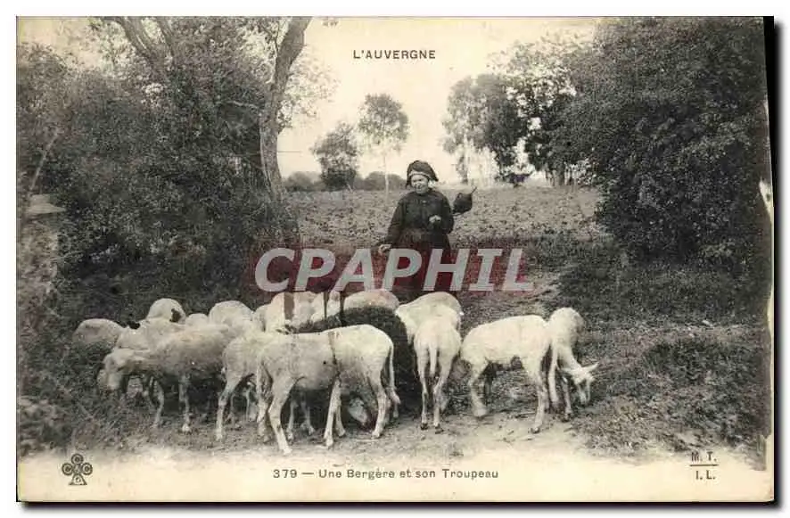 Cartes postales Folklore L'Auvergne Moutons Une bergere et son tropeau