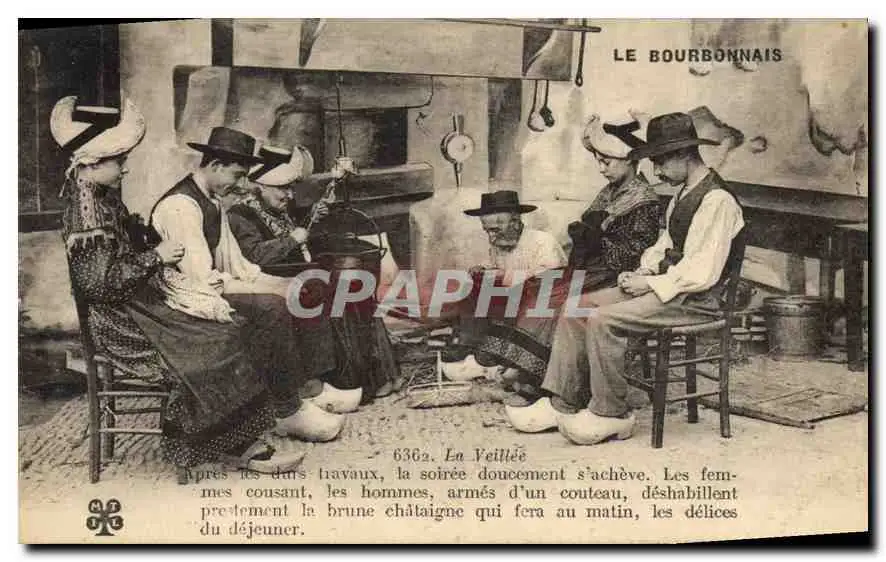 Cartes postales Folklore LE BOURBONNAIS. - La Veill�e. Apr�s tes durs travaux la soir�e doucement s'ach�ve. Les
