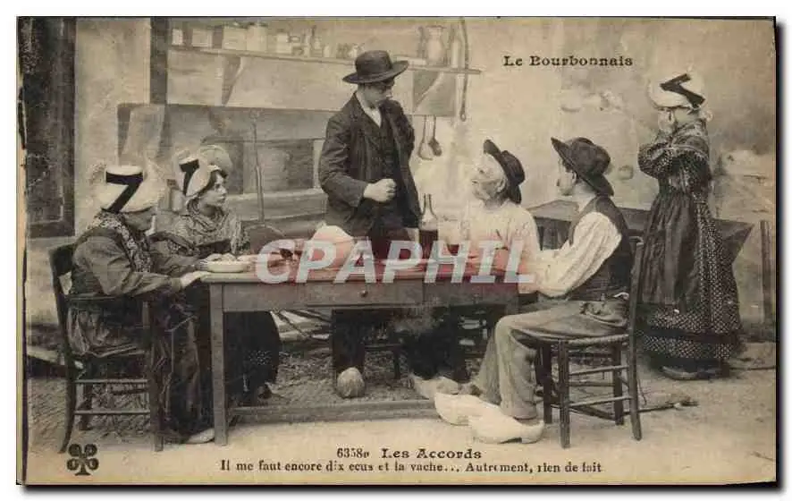 Cartes postales Folklore Le Bourbonnais. - Les Accords. Il me faut encore dix ecus et la vache...Autrement rien