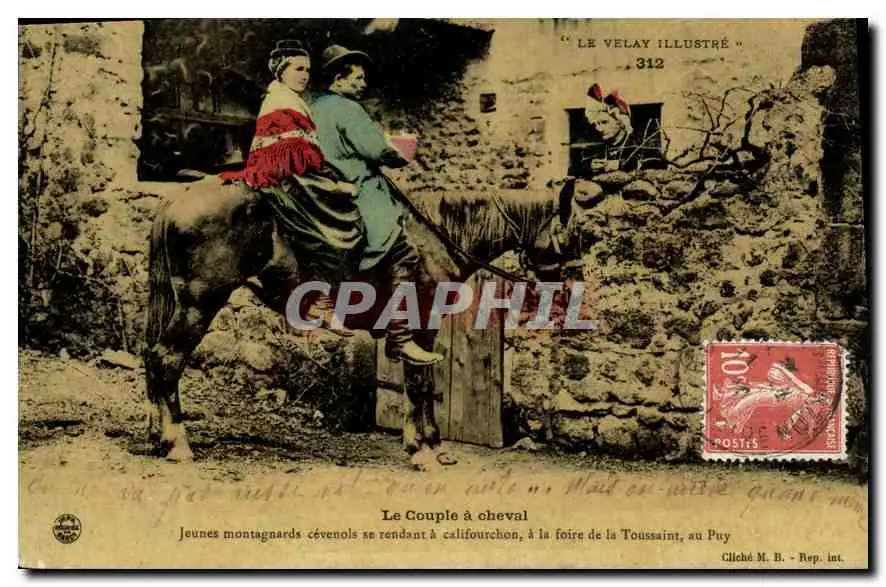 Cartes postales Folklore Le Couple � Cheval.Jeunes montagnards c�venols se rendant � califourchon � la foire de