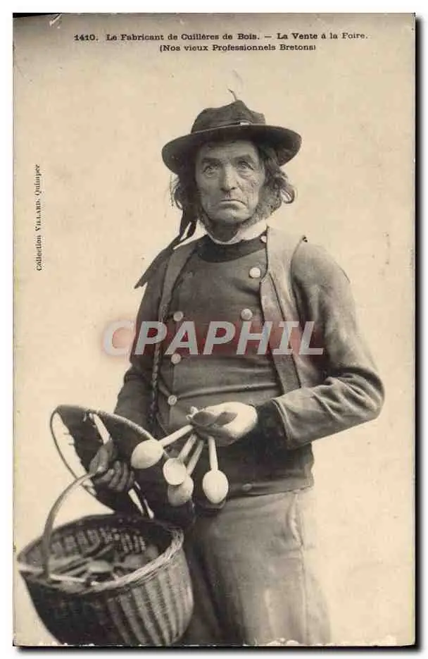 Cartes postales Folklore Le fabricant de cuilleres de bois La vente a la foire TOP