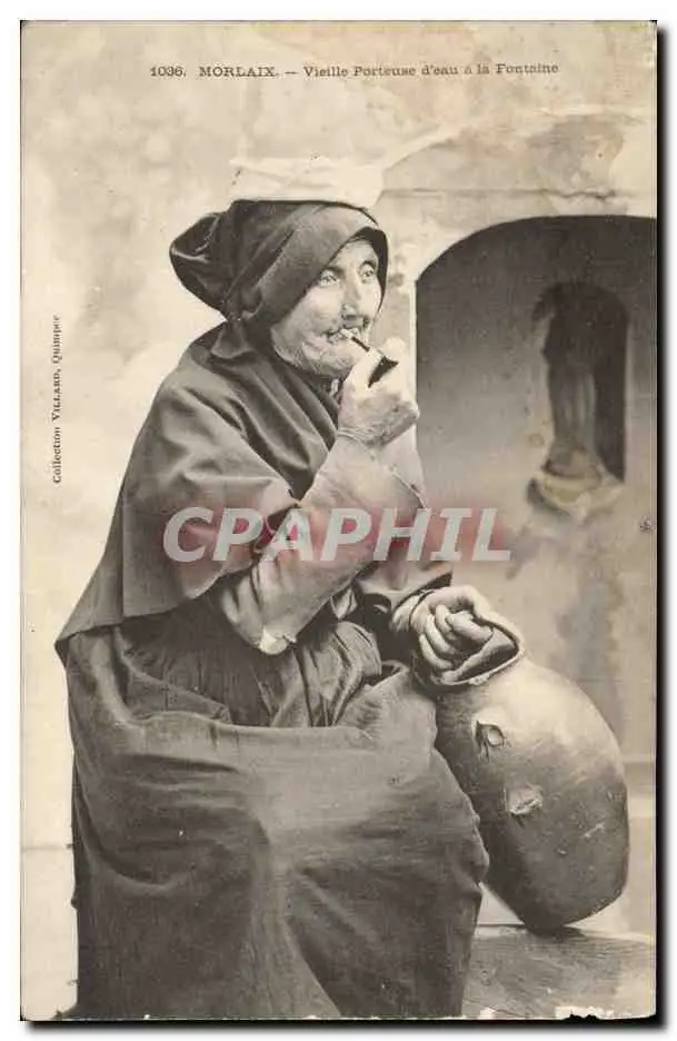Cartes postales Folklore Morlaix Vieille porteuse d'eau a la fontaine