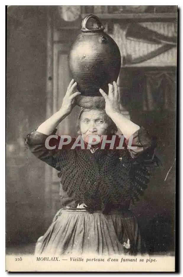 Cartes postales Folklore Morlaix Vieille porteuse d'eau fumant sa pipe Tabac TOP