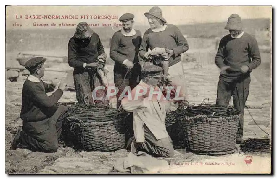 Cartes postales Folklore Normandie Groupe de pecheurs preparant leurs lignes Peche