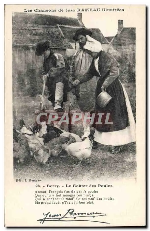 Cartes postales Folklore Paysans Les chansons de Jean Rameau illustrees Berry Le gouter des poules