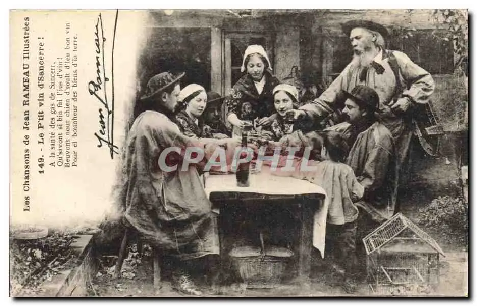 Cartes postales Folklore Paysans Les chansons de Jean Rameau illustrees Vin de Sancerre