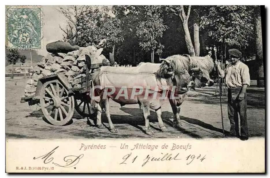 Cartes postales Folklore Pyrenees Un Attelage de boeufs