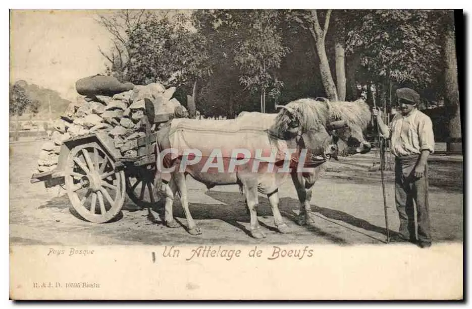 Cartes postales Folklore Un attelage de boeufs
