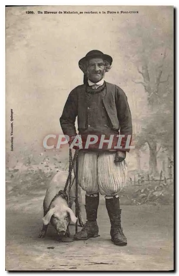 Cartes postales Folklore Un eleveur de Mahalon se rendant a la foire a ontCroix Cochon Porc