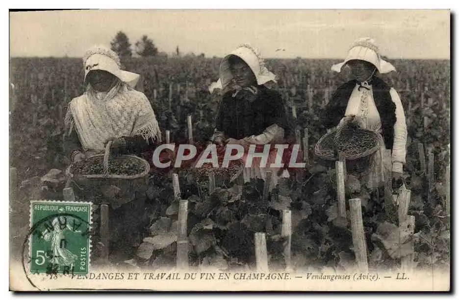 Cartes postales Folklore Vendanges et travail du vin en Champagne Vendangeuses Avize TOP