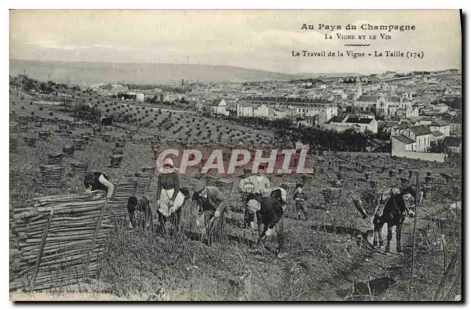 Cartes postales Folklore Vigne Vendanges Champagne Le travail de la vigne La taille TOP