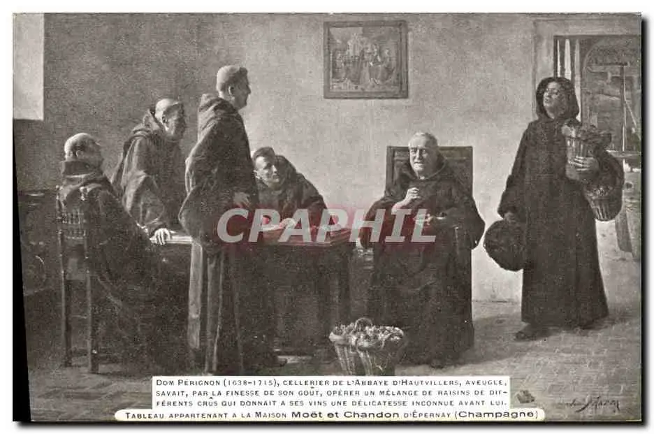 Cartes postales Folklore Vin Vendange Champagne Dom Perignon Cellerier de l&#39abbaye d&#39Hautvillers Aveugle