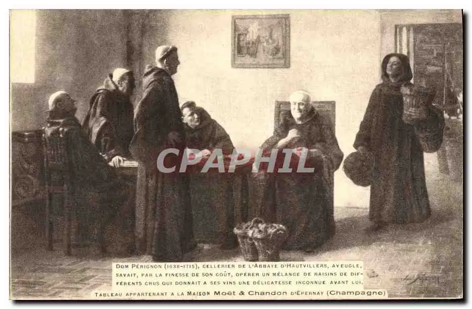 Cartes postales Folklore Vin Vendange Champagne Dom Perignon Cellerier de l&#39abbaye d&#39Hautvillers Aveugle