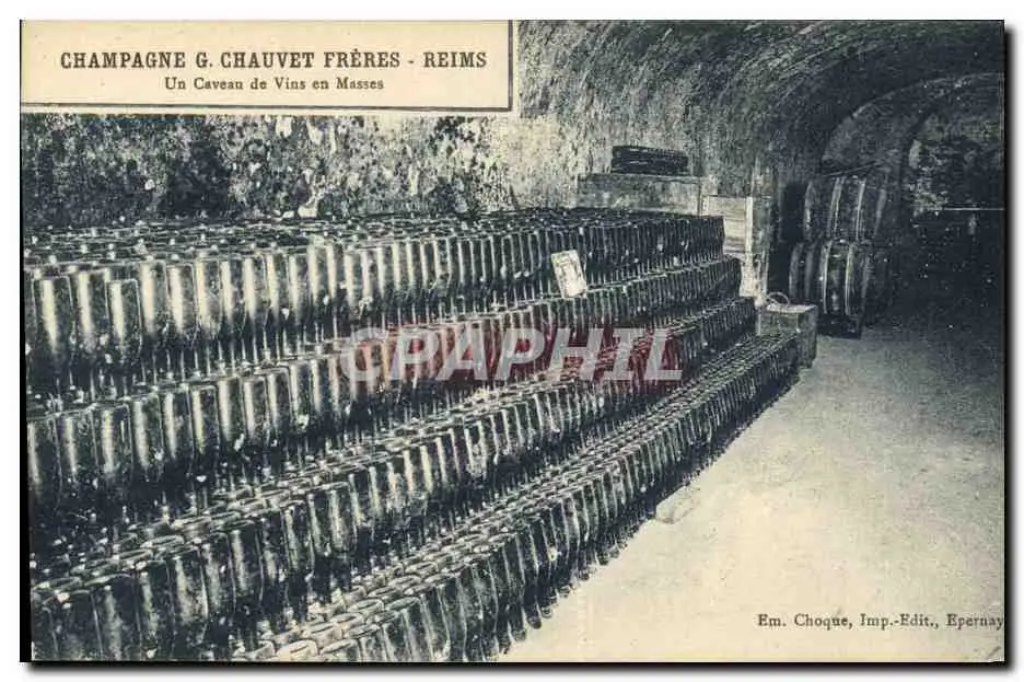 Cartes postales Folklore Vin Vendange Champagne G Chauvet Freres Reims Un caveau de vins en masses