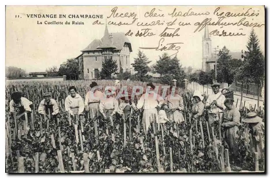 Cartes postales Folklore Vin Vendange Champagne La cueillette du raisin TOP