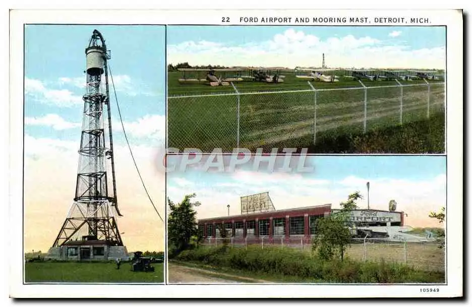 Cartes postales Ford Airport and Mooring Mast Detroit Mich Avion Aeroport