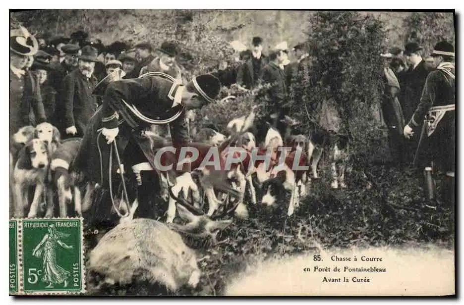 Cartes postales Foret De Fontainebleau Avant La Curee Chasse a courre Chiens
