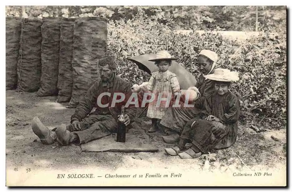 Cartes postales Foret Folklore Sologne Chrbonnier et sa famille en foret TOP