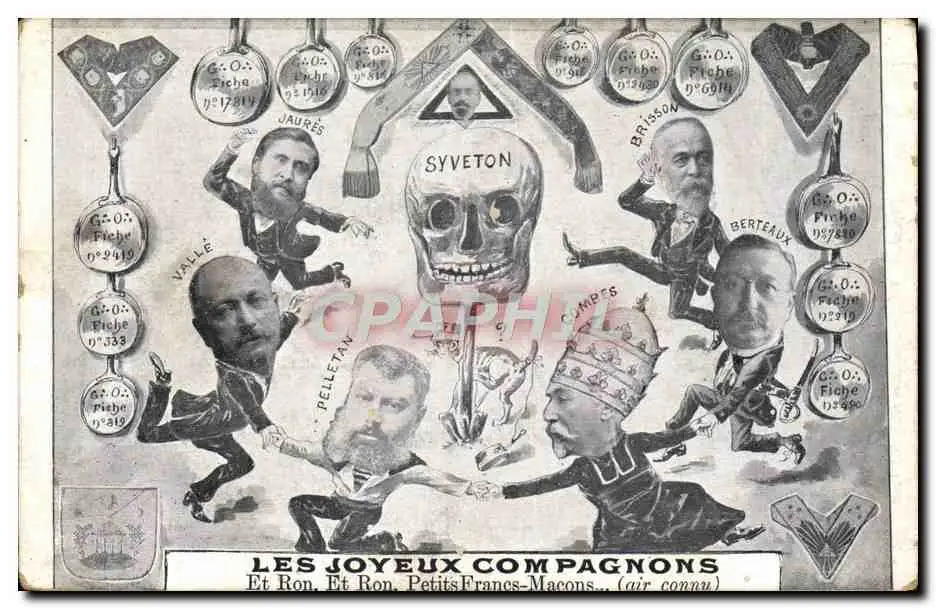 Cartes postales Franc macon Maconnerie Les joyeux compagnons Jaures Syveton Pelletan Combes Vallee Brisson Berte