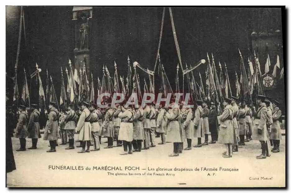 Cartes postales Funerailles du Marechal Foch Les glorieux drapeaux de l&#39armee francaise