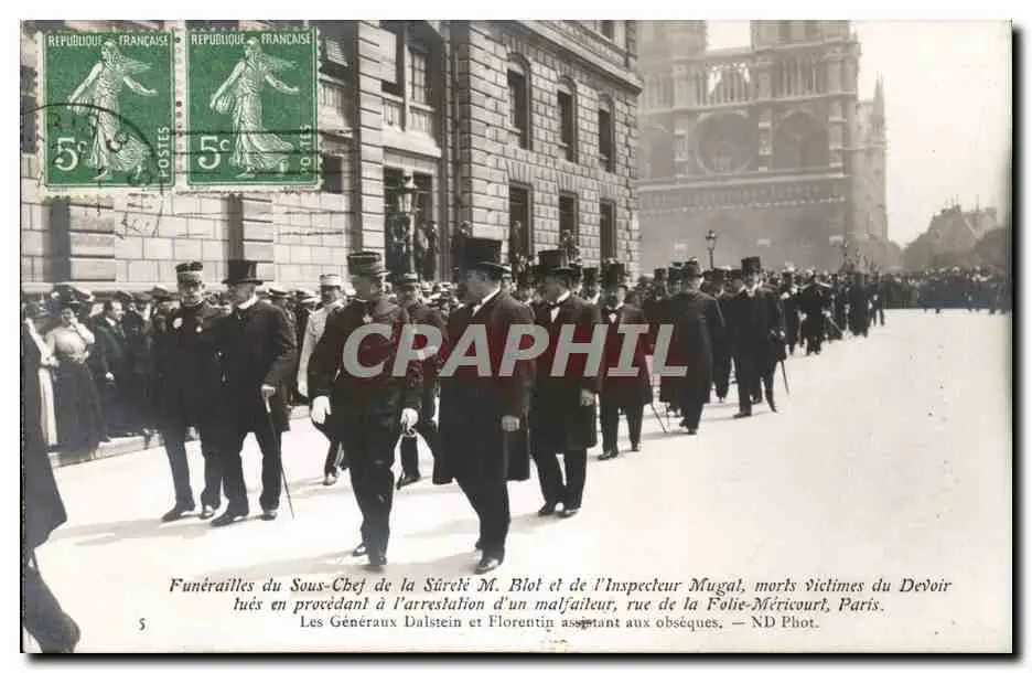 Cartes postales Funerailles du sous chef surete Blot et inspecteur Mugat morts rue de la Folie Mericourt Paris G