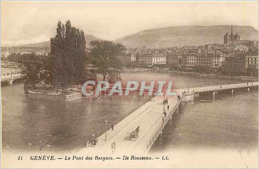 Cartes postales GENEVE-Les Pont des Bergues-Ile Rousseau-LL
