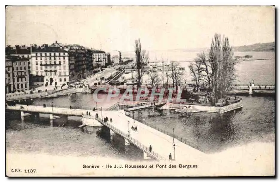 Cartes postales Geneve Ile J J Rousseau et Pont des Bergues