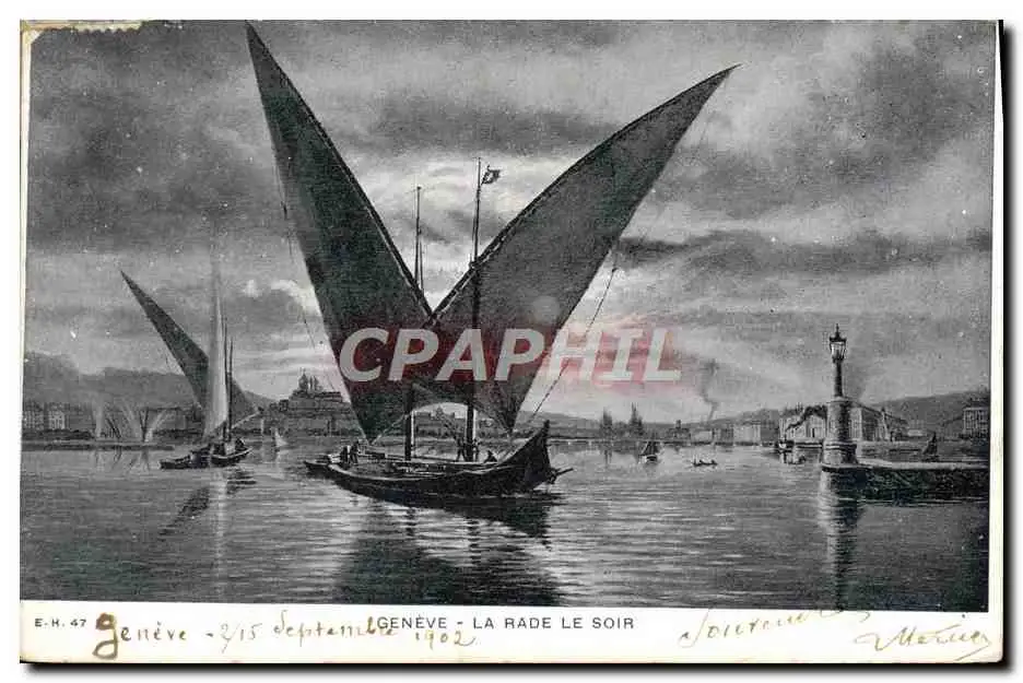Cartes postales Geneve La Rade Le Soir Bateau