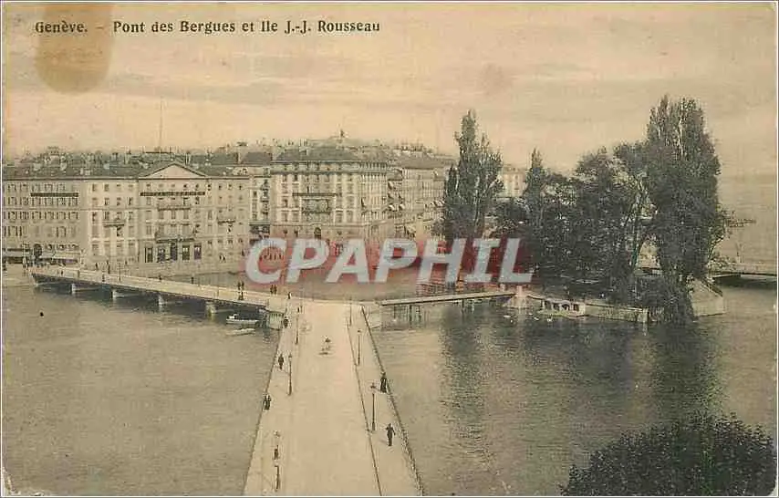 Cartes postales Geneve Pont des Bergues et Ile JJ Rousseau