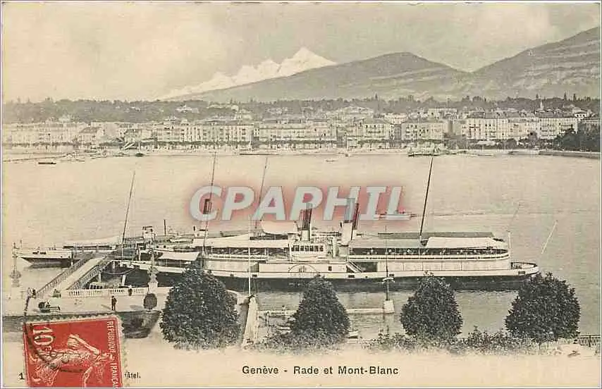 Cartes postales Geneve-Rade et Mont Blanc Bateau