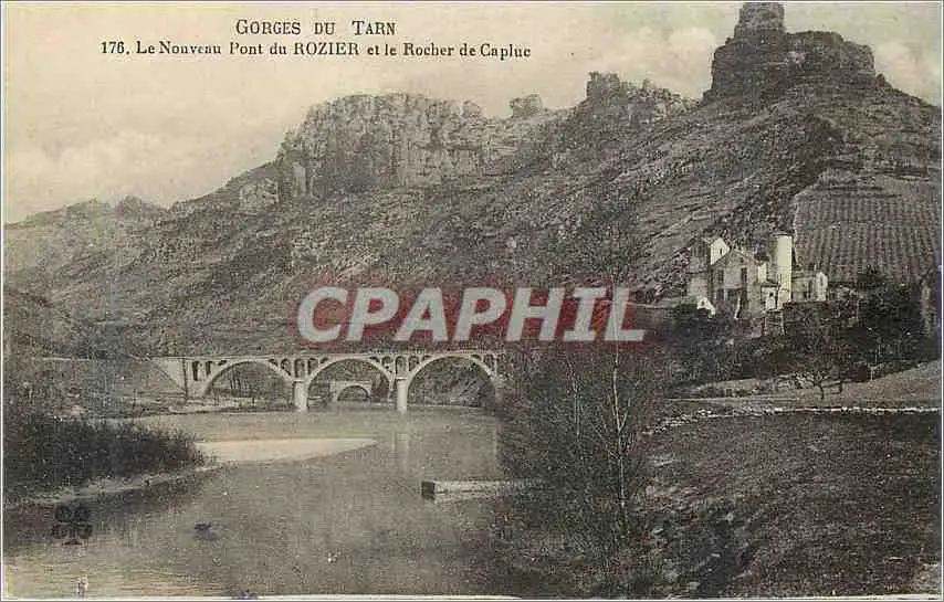 Cartes postales Gorges du Tarn Le Nouveau Pont du Rozier et le Rocher de Caplue