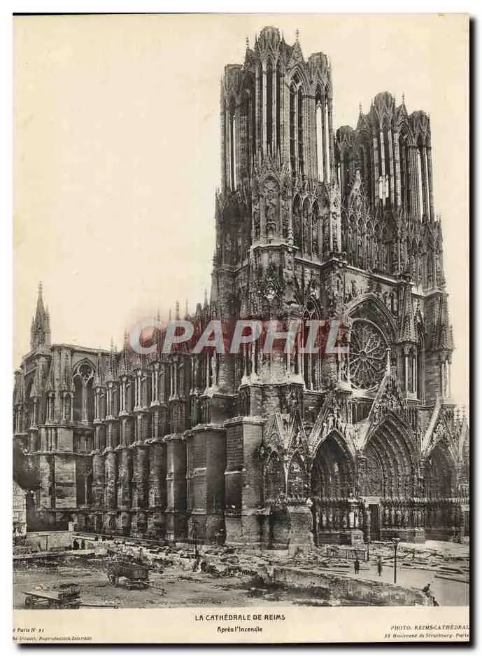 Cartes postales Grand Format La Cathedrale De Reims Apres l&#39incendie 23.5 * 29.5 cm