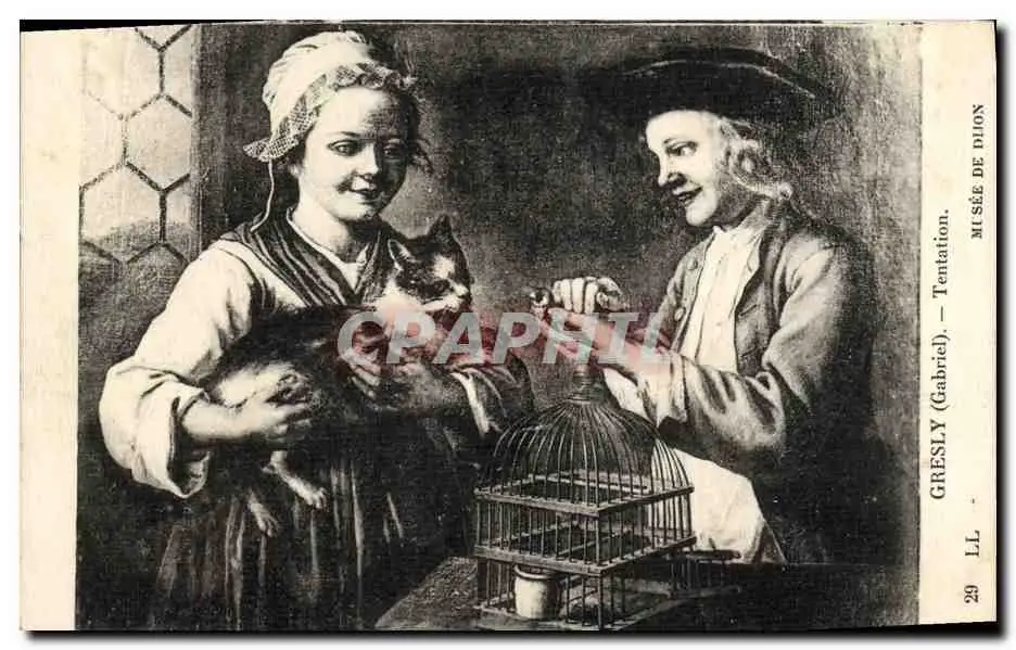 Cartes postales Gresly Tentation Musee de dijon Chat