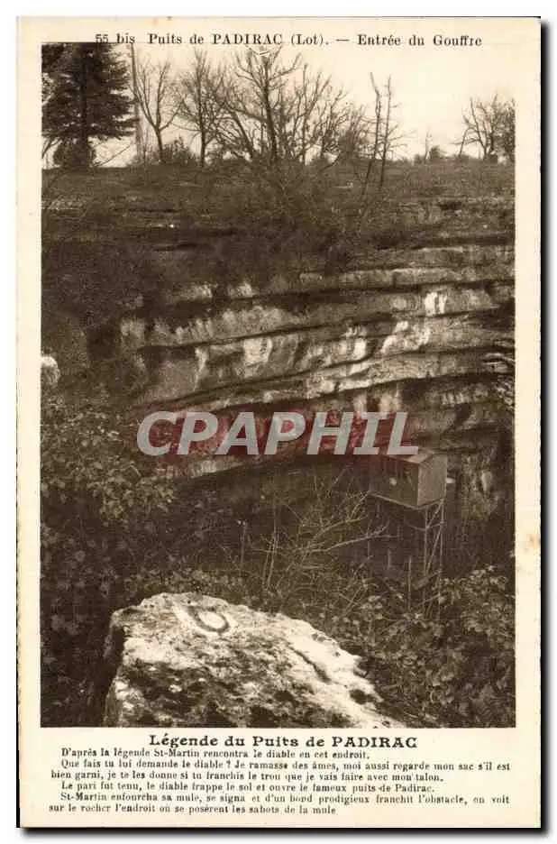 Cartes postales Grotte Grottes Legende du puits de Padirac Entree du gouffre