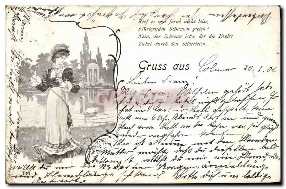 Cartes postales Gruss aus Colmar Femme Cygne