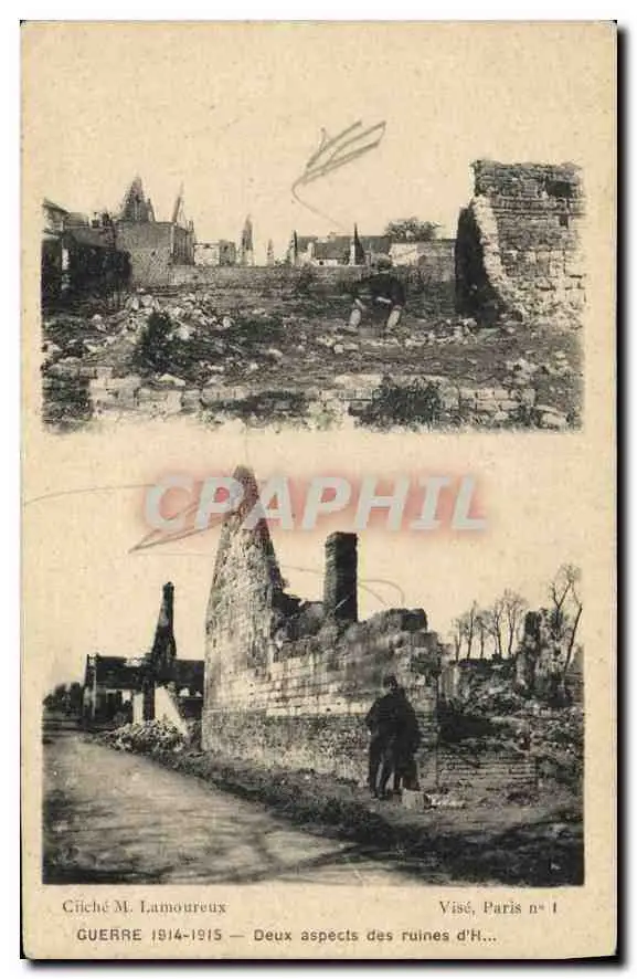 Cartes postales Guerre Deux aspects des ruines Militaria