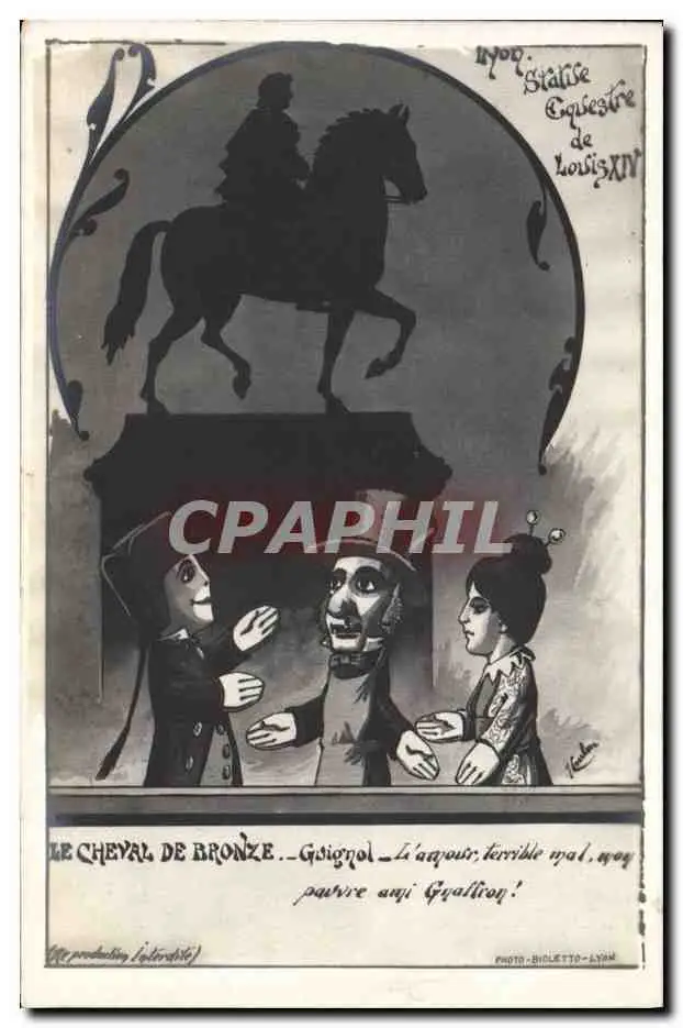 Cartes postales Guignols Guignol Le cheval de bronze lyon Statue equestre de Louis XIV