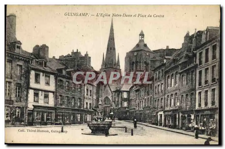 Cartes postales Guingamp L'Eglise Notre Dame et Place du Centre