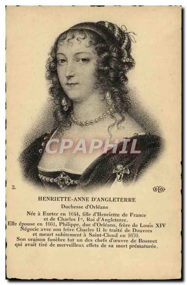 Cartes postales Henriette Anne D'Angleterre Duchesse d'Orleans