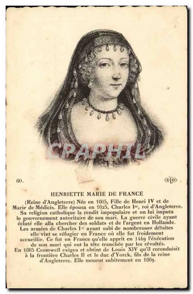 Cartes postales Henriette Marie de France Reine d'Angleterre
