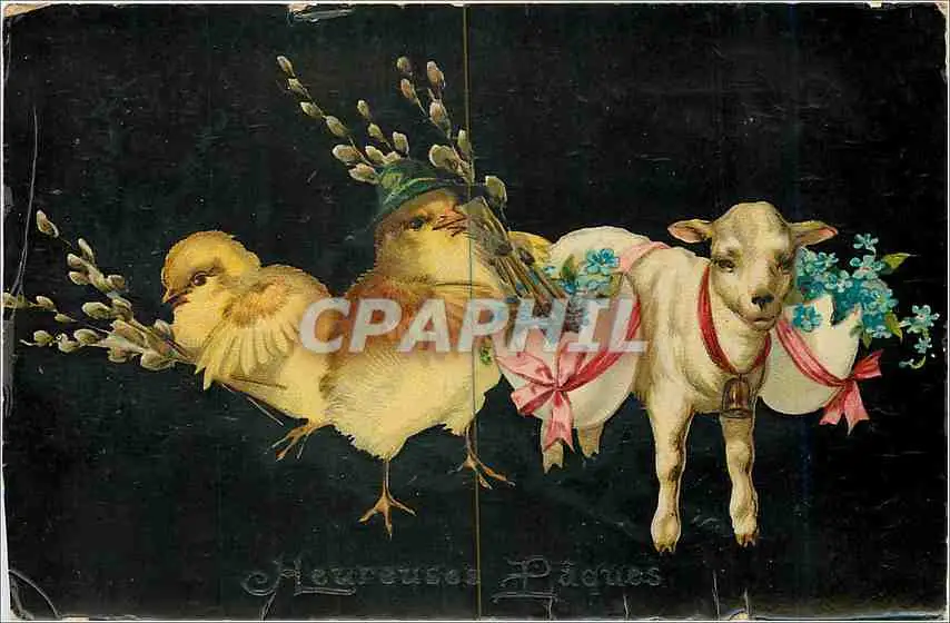 Cartes postales Heureuse Paques Poussins Agneau